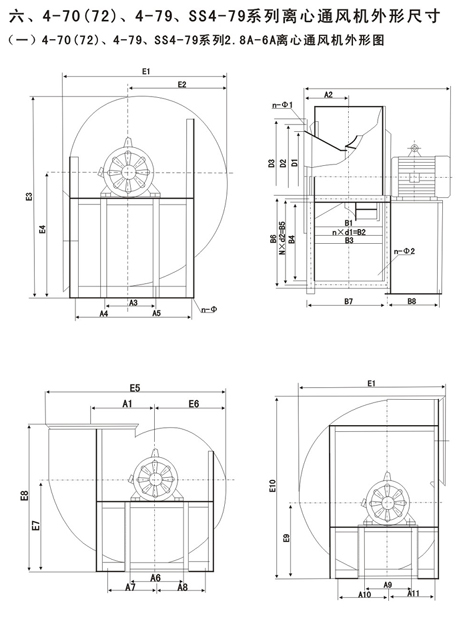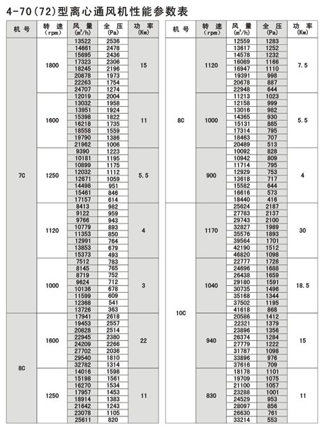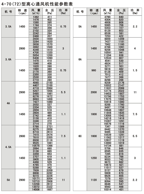 4-72型不銹鋼離心風機風量:930~154000m3/h,風壓170~2950Pa;4-79型通風機共20種機號,風量1100~438000 m3/h,風壓230~3320Pa,用戶可根據不同參數選擇。 本系列風機廣泛應用于各類大中型工廠和高級民用建筑、大型廣場輸入和輸出氣體的室內換氣通風。如客戶有特殊要求,本公司則可以根據用途不同,選擇不同材料制作成防爆、防腐、耐高溫型風機,以滿足廣大用戶的需要。