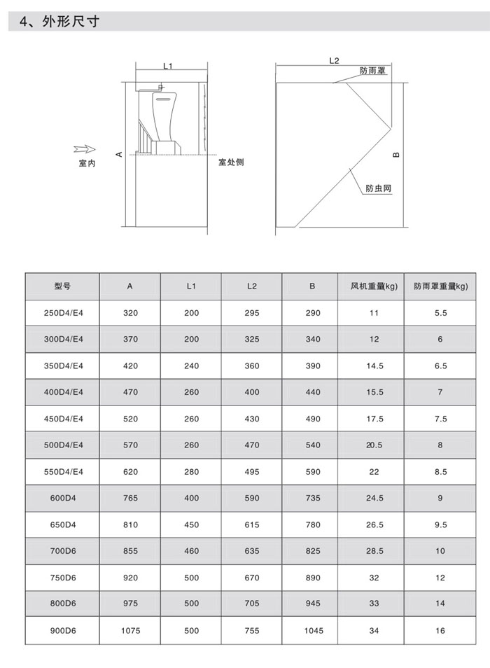邊墻風機一般用于邊墻壁式排風,配設45°防雨罩(或特殊制造成60°)和防蟲網(夜間可防止昆蟲循燈光飛入車間)。可按需要制成邊墻送風機型號為DWSP(WSP),配設90°防雨罩(防風、雨、塵)和防蟲網(夜間可防止昆蟲循燈光飛入車間)。